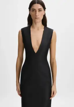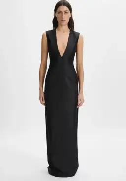 Beare Park The Eleanor Gown in Black is a full-length v-neck sleeveless gown made from silk dupion for a structured, slimline silhouette.