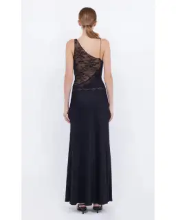 The BEC + BRIDGE Abrielle Lace Maxi Dress is crafted from a combination of soft mesh and contrast stretch lace fabrics. The dress features a v neckline, thin cord shoulder strap on one side and contrast lace trimming. The dress is lined at the bust and semi sheer through the mid section before falling into a relaxed skirt.