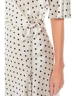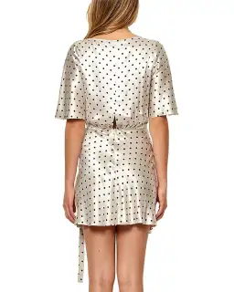 The perfect piece for dressing up or down with ease, this elegant dress by Bec & Bridge features a wrap-front, V neckline and self belt tie. The polka dot print throughout complete this short sleeve piece.- Wrap silhouette- Short sleeves- V neckline