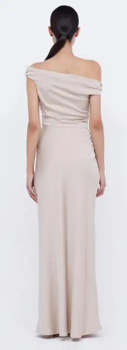 Bec & Bridge Eternity Off Shoulder Maxi dress in Sand Size AU 12