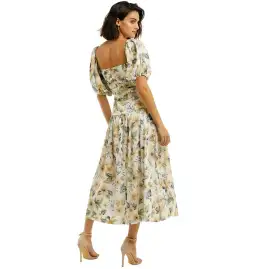 Channel your inner bohemian in this stunning Bec and Bridge Fleurette Off Shoulder Dress. Done in lovely floral print, this midi dress features off the shoulder neckline, a bust knot detail, and short puffy sleeves. Falling into a gathered full skirt with a thigh-high split, it is ideal for a garden wedding or a weekend getaway.