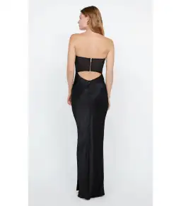 A statement eventwear style, the BEC + BRIDGE Halle Strapless Dress features gathered detailing on bust, chic cut-outs and a contrasting mesh back panel. The maxi dress is finished with a rolled hem. This garment is certified Australian made.