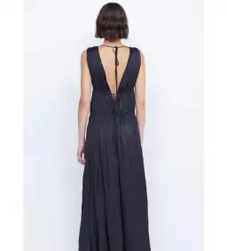Crafted from a lustrous lightweight fabric, the BEC + BRIDGE Louann Maxi Dress is an effortless style. The relaxed maxi features a deep v neckline, mid-thigh side splits, gathered channels at the under bust and low waist that self-tie at the open back and a pleated skirt that drapes into a maxi length. Dress can be adjusted for extra coverage.