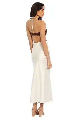 The Nadia Cut Out Dress in White is a stunning choice for your next summer event. This daring dress boasts a strappy adjustable halter neck and dramatic front cutouts that wrap around to an open back. With its midi length, halter neckline, and cutout detailing, it exudes style and allure.