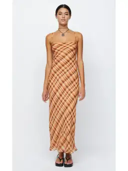 Bec & Bridge Soleil Slip Maxi Dress Golden Hour Check Size AU 8
