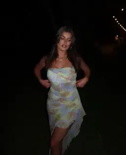 The dreamy Zephy Asym Dress is crafted from a silk print fabric in a flattering and elevated silhouette. The style features a gathered mini dress with delicate sequin detailing and thin cord straps that tie at a low back. The skirt panel is connected at one side and features an asymmetrical cascading baby locked ruffle falling to a maxi length. Internal Mini Dress can be ruched up for a high side split, or pulled down for extra coverage.