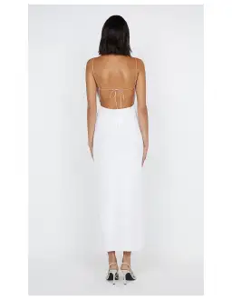 The BEC + BRIDGE Aaliyah Sequin Maxi Dress in White is the perfect statement party dress, featuring a straight neckline with low scoop back, and thin cord shoulder straps that self tie at the back.