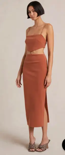 The Alba Cut Out Midi Dress in Terracotta