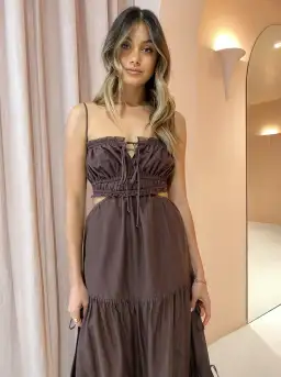 Bec & Bridge Alexandra Tie Maxi Dress in Chocolate.