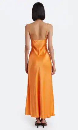 Cut on the bias from a luxe silk, the Amber V Maxi Dress is a sleek, statement design. The empire-fit maxi features ruched bust detailing, thin rouleau straps and a plunging low back, finished with elasticised crossover straps.