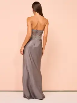 Indulge in modern luxury with the Bec & Bridge Amoras Gown in Grey.
