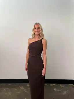 Bec & Bridge Ariven Asym Midi Dress in Dark Chocolate Size 10