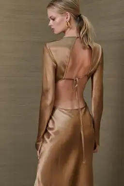 Bec & Bridge Aubrey Long Sleeve Maxi Dress Gold Size 10