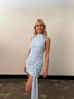 Bec & Bridge Domenic Asym Mini Dress Sky Blue Size AU 10