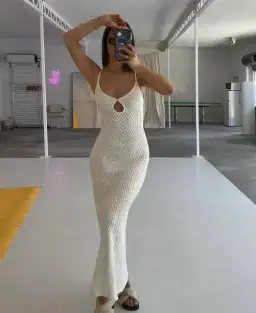 A statement eventwear style, the Effie Knit Key Maxi Dress is spun from a unique basket-weave textured fabric that hugs the silhouette. The feminine design features a V-neckline to highlight the décolletage and a keyhole cut-out detail underneath the bust.