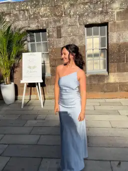 The Eternity Asym Maxi Dress is a modern and sophisticated style. The maxi dress features a delicate and asymmetrical one-shoulder strap, ruching at the waist to create a flattering silhouette and a full bias cut skirt that drapes down the body.