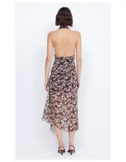 The Bec + Bridge Herlani Halter Dress is crafted from a soft mesh printed fabric. The midi dress features an adjustable halter neck, flattering gathers throught the body with ruching detail on the side. The asymmetrical hem and thigh-high split adds to the sensualness of this dress.
