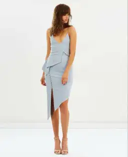 With lines and buttons that divinely follow your curves, this remarkable Bec & Bridge Honeysuckle asymmetrical dress is a sight to behold. A plunging V-neckline leads enticingly to gathered detailing and a thigh-high split.