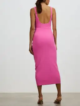 This bonded crepe midi dress by Bec and Bridge is a captivating power dress for powerful women! The Karina Tuck Midi dress features a vibrant pink stretch fabric, square neckline, and a low scoop back. Perfect to hire for a day at the races.
