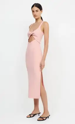 Bec & Bridge Joelle Cut Out Detail Midi Dress in Guava Pink Size 6