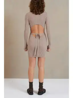 Bec & Bridge Lyla Knit L/S Mini Dress in Fawn Size AU 6