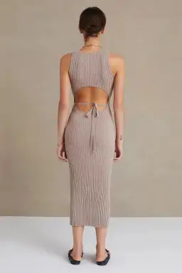 Bec & Bridge Lyla Knit Midi Dress in Fawn Size AU 6