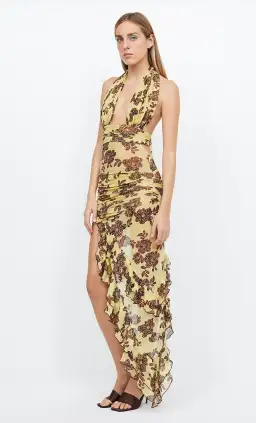 Bec & Bridge Malibu Bay Halter Dress in Yellow Floral Size 6 / AU 6-8