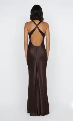 The BEC + BRIDGE Maxina Crossover Dress is a timeless, yet elegant maxi silhouette, perfect for that special occasion. Cut on the bias to skim the silhouette, this maxi dress features a halter neckline and bust darts. Cross over back strap details and an open back enhance the details of the dress