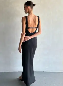 Bec & Bridge Naomi Split Maxi Sheer Mesh Dress in Black Size AU 6