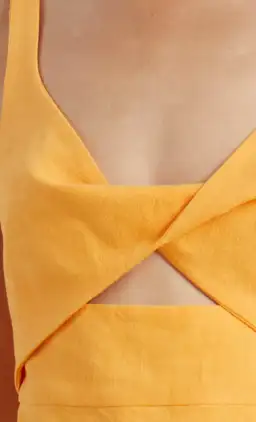 Flattering and easy to wear featuring an under-bust cut-out and twist detail. Finished with a rolled hem and bias-cut skirt.