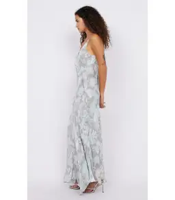 The BEC + BRIDGE Zabelle Frill Dress in Moonshadow is a delicate bias-cut georgette maxi dress, featuring a V-neck with cascading asymmetrical ruffles. Perfect for formal occasions or pair with sandals for effortless summer dressing.