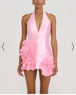 The Belinda Dress is a bold and vibrant addition to our mini collection, designed in a luxurious baby pink mikado fabrication. Featuring a lowered halter neckline with fabric-covered buttons at the centre front, creates a chic, contemporary silhouette. Finished with soft ruffle detailing along the hemline adds. a touch. of playful femininity. Perfect for any special occasion, the Belinda Dress offers an elevated blend of bold colour, modern design and timeless elegance.