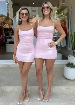 Benni Juliano Sequin Mini Dress Candy Floss Pink Size AU 10