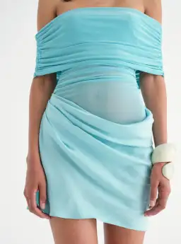 Benni Nico Off Shoulder Mini Dress Aquamarine Size 8