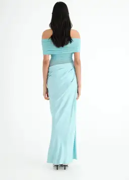 Benni Nico Off Shoulder Maxi Dress in Aquamarine Blue Size 10
