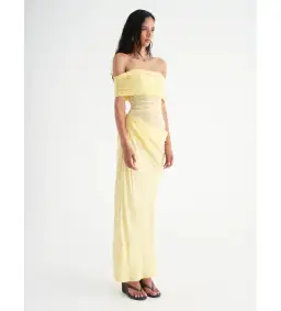 Benni Nico Off-Shoulder Maxi Dress in Butter Size AU 8