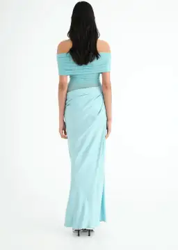 Benni Nico Off Shoulder Maxi Dress Aquamarine Size 8 / AU 8
