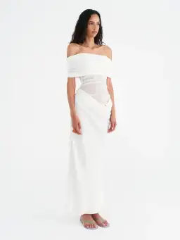 Benni Nico Off Shoulder Maxi Dress White Size AU 8