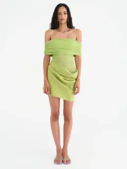 Benni Nico Off Shoulder Mini Dress in Apple Green Size 8