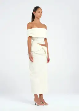 BENNI Rudi Off-Shoulder Top & Midi Skirt in cream Size 8 / AU 8