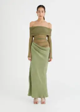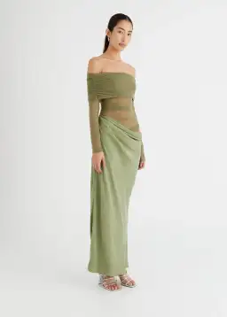 Benni Yasmin Off-Shoulder Maxi Dress Green Size 6