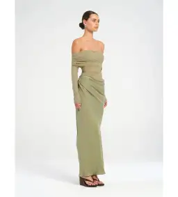 Benni Yasmin Off-Shoulder Maxi Dress in Pistachio Size XL / AU 14