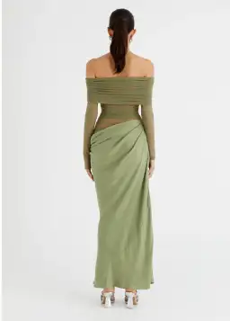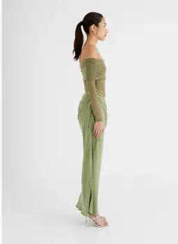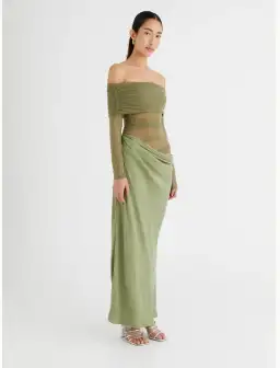 Benni Yasmin Off Shoulder Maxi Dress in Pistachio Size 8
