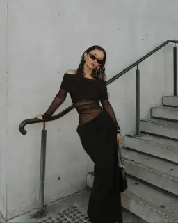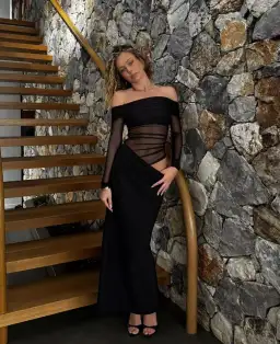The Yasmin Maxi Dress features a beautiful off-shoulder design with a flattering cowl on the wearers left side waist. The overlapping skirt adds a touch of sophistication while the mesh bodice. Perfect for any special occasion.