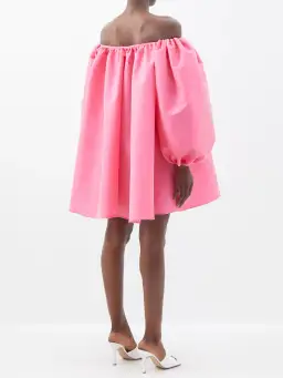 This mini version of BERNADETTE's signature 'Bobby' dress is cut from lustrous taffeta that's gently structured to hold the voluminous shape. It's designed with an off-the-shoulder neckline that's gathered to create soft pleats and has billowy sleeves