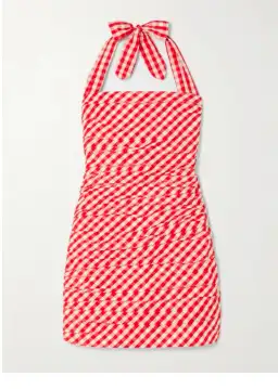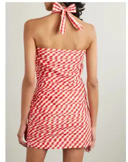 Bernadette Tippy Gingham Pleated Taffeta Halterneck Mini Dress Red Size 6