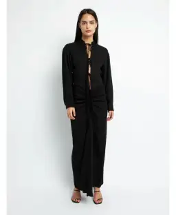 The Bertoia Long Sleeve Shirt Dress is an updated signature Christopher Esber style crafted from a woven blend. The new silhouette features an open centre front accentuated through extended ties leading to a ruched skirt panel that can be adjusted with a draw cord.