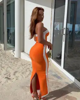 Featuring a white border around the dress, that emphasizes your hourglass silhouette and complements all body shapes.