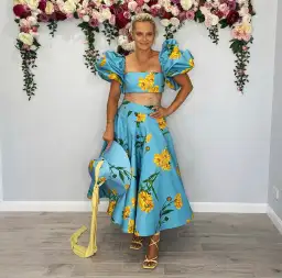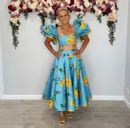Leo and Lin Bleu Marguerite Puff Top & Maxi Skirt Set Print Size 10