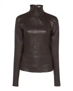 Bottega Veneta Leather Turtle Neck Top Brown Size AU 6